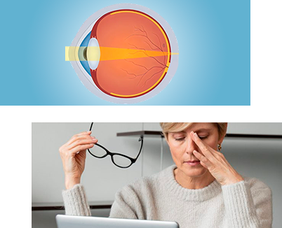 Geralmente surge após os 40 anos e ocorre devido à perda gradual da elasticidade do cristalino, a lente natural do olho responsável pelo foco das imagens em diferentes distâncias.